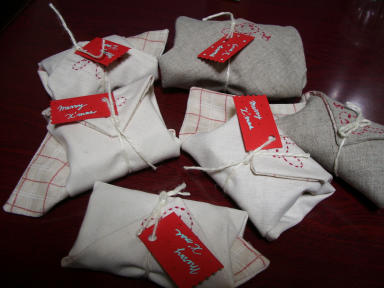 せっけんを、ウサギ&イニシャル入り刺繍した